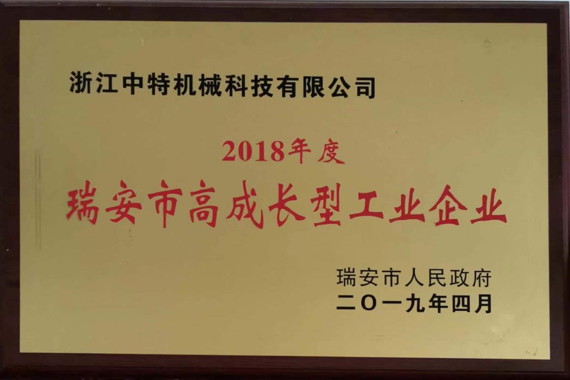 2018年度瑞安市高成長(zhǎng)型工業(yè)企業(yè)
