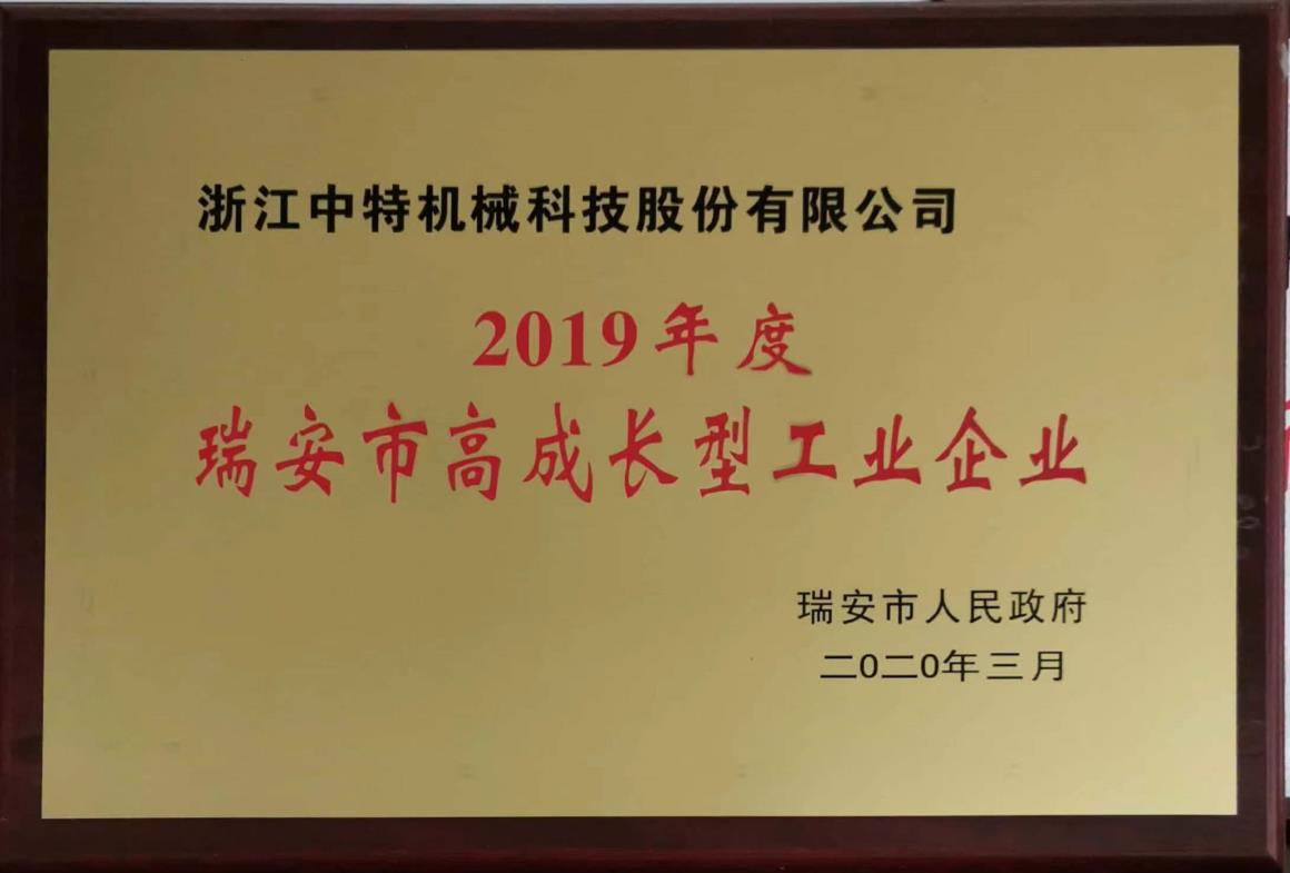 2019年度瑞安市高成長(zhǎng)型工業(yè)企業(yè)
